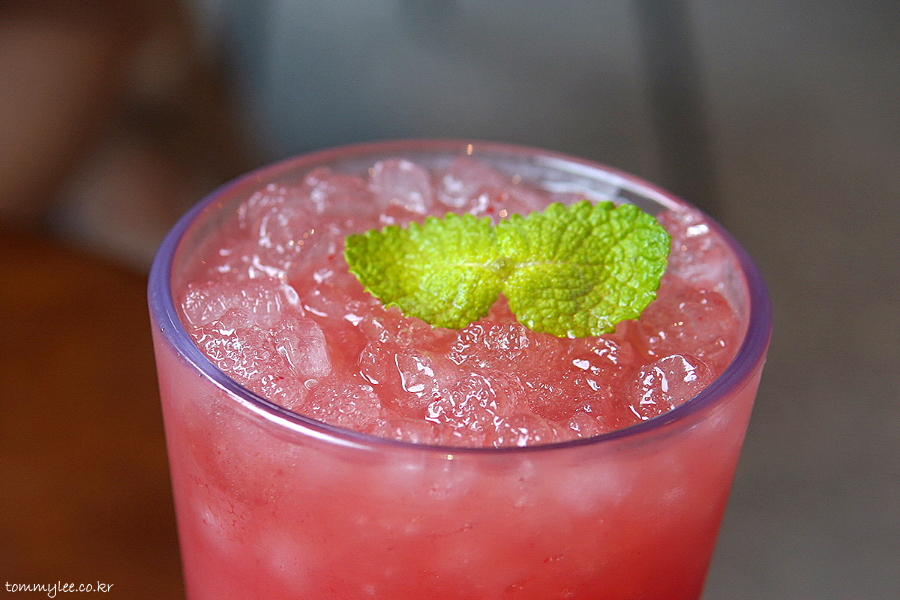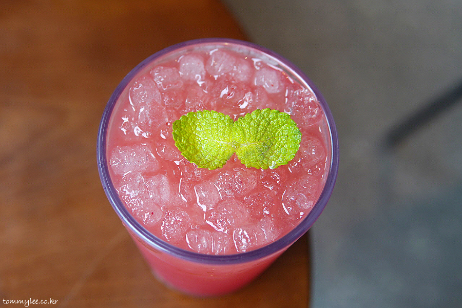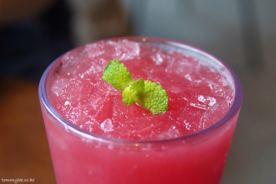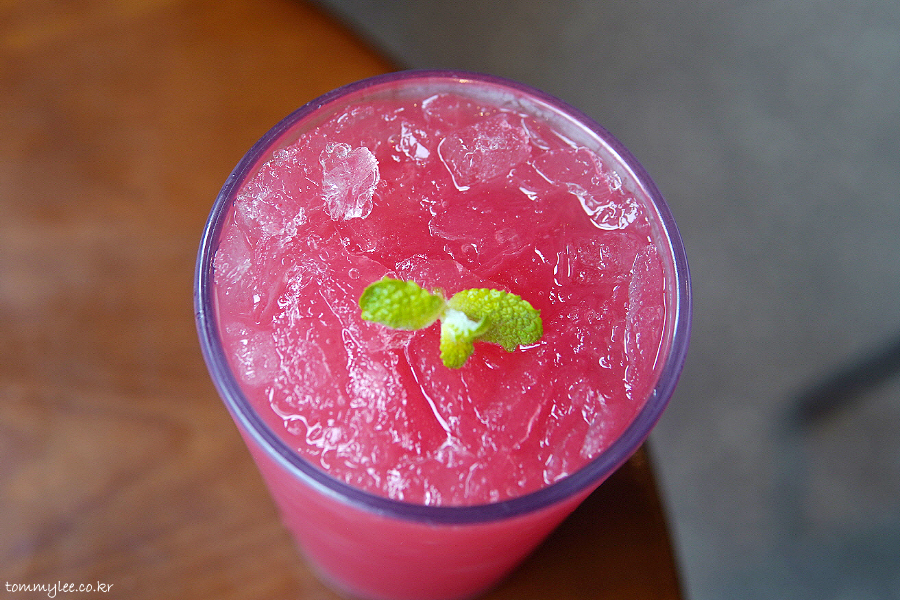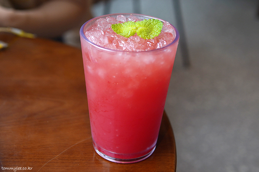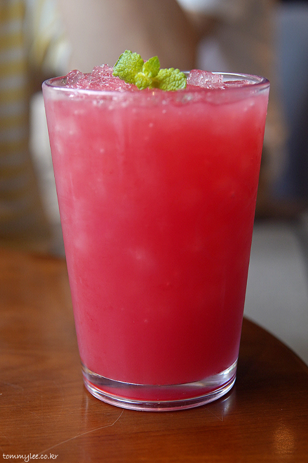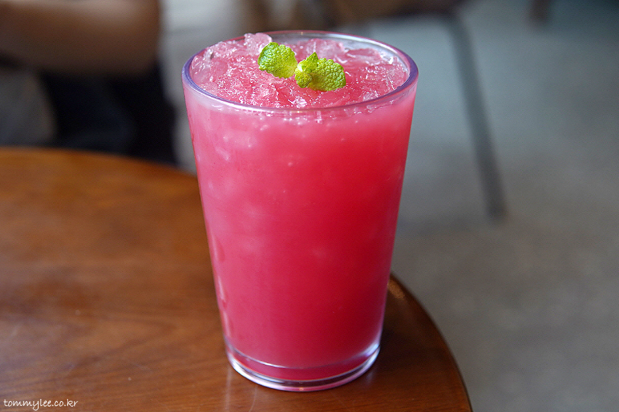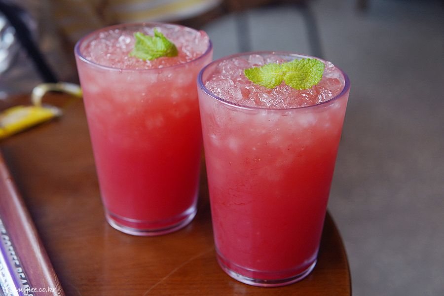 함안 수박주스 2잔과 고창 수박주스 1잔 주문했는데.. 고창수박과 함안수박 주스 색이 확연히 다르긴 하더라고요.. 고창수박 쪽이 색이 더 진했음..