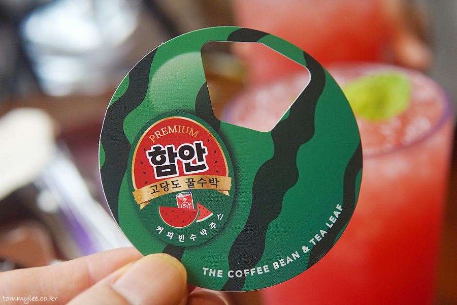 커피빈에서 오로라 멤버스 한정 깜짝 쿠폰으로 퍼플오더 전용 시원한 수박주스 50% 할인쿠폰을 줘서 커피빈에 다녀오게 되었답니다.. 올해는 고창수박주스와 함안수박주스 2장의 50% 할인 쿠폰을 줬어요..
