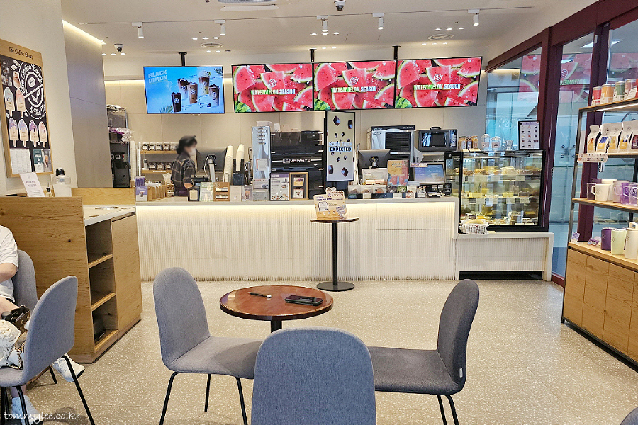원래는 커피빈 명동거리점을 가려고 했는데.. 명동거리점은 오늘은 함안수박이 안 들어왔다고 해서.. 함안수박과 고창수박 2종 모두가 주문가능한 하나금융명동사옥점으로 급 이동.. 하나금융 명동사옥점은 하나플레이파크 내에 있는 매장이랍니다.. 예전엔 스타벅스가 있던 자리인데 지금은 커피빈..