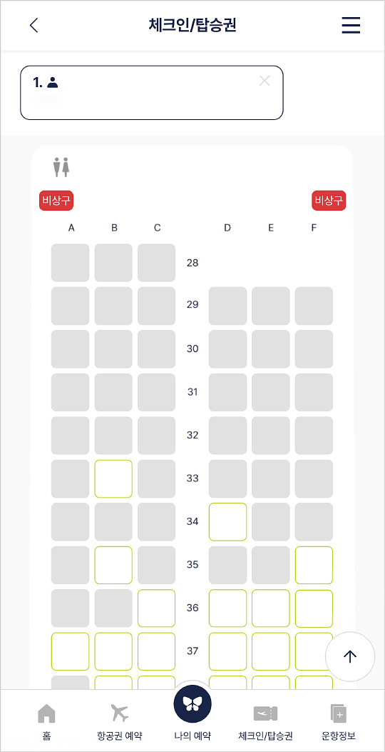 좌석 지정을 할 수가 있답니다.. 저는 37A로 갈까 36F로 갈까 고민.. 정말 힘든 결정의 시간이었는데.. 어차피 밤 비행기라 큰 의미는 없었어요.. ㅡㅡㅋ..
