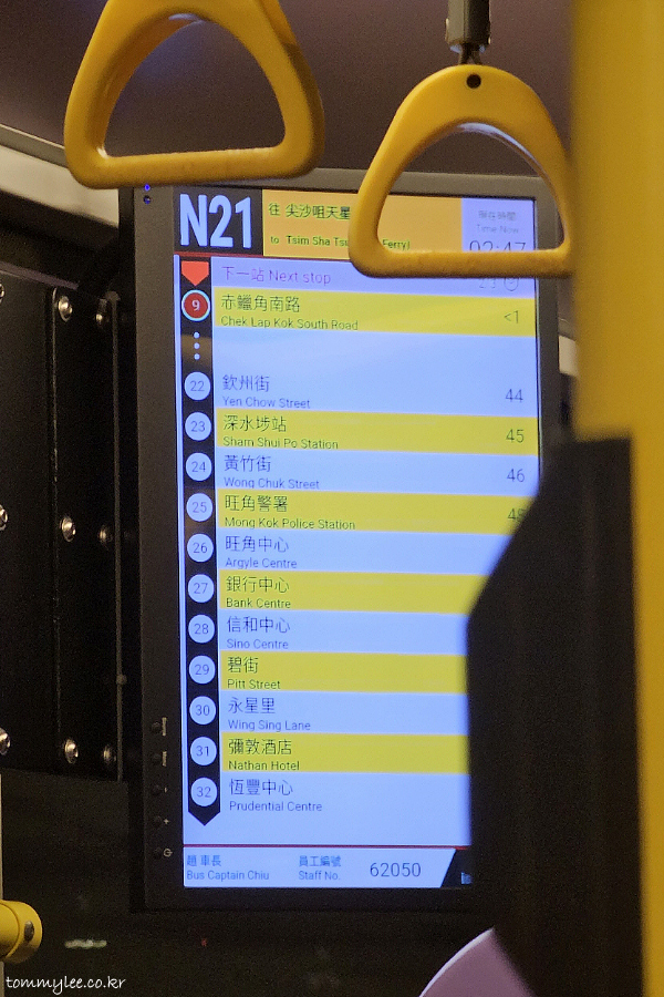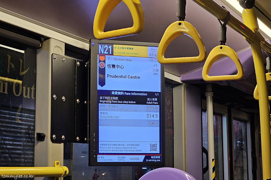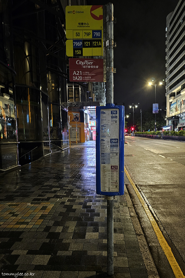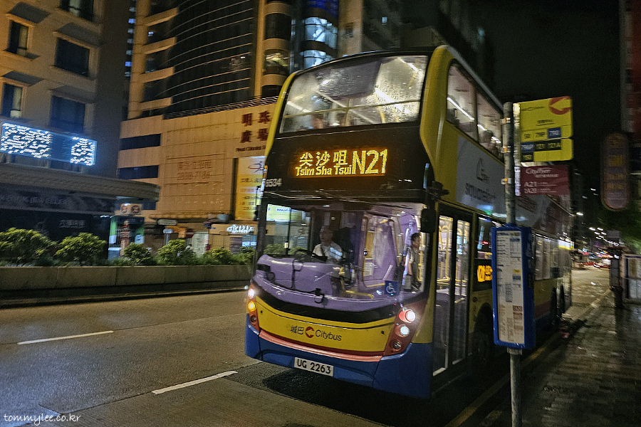 버스에서 저만 내렸습니다.. 저를 호텔이 있는 푸르덴셜센터 정류장까지 데려다준 침사추이행 N21 버스 기념촬영..