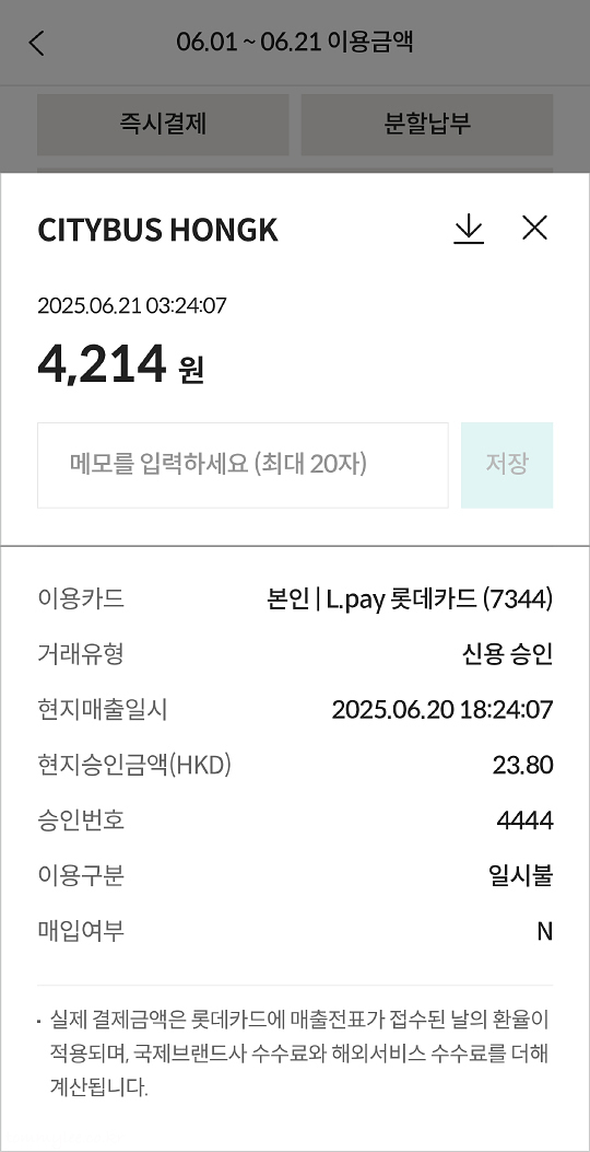 롯데 L페이 비자카드가 이번 여행에서 이리 활약하게 될 줄은 몰랐네요.. 롯데 패밀리에서만 쓰는 롯데 전용카드였는데 말이죠.. 제가 가지고 있는 모든 비자카드가 NFC 지원이었지만.. 저 컨택리스 마크가 앞면에 표시된 카드가 이 롯데카드가 유일해서 홍콩여행 중엔 이것만 사용했어요..