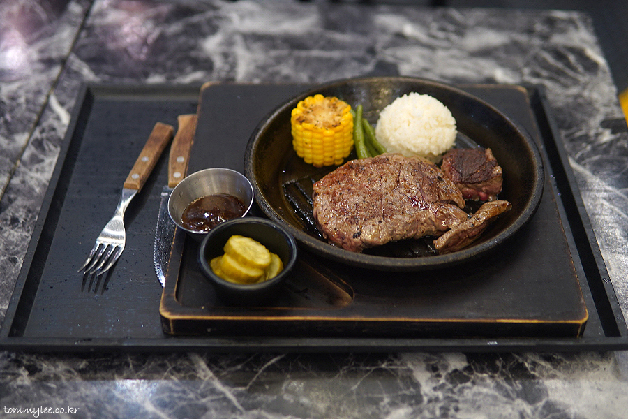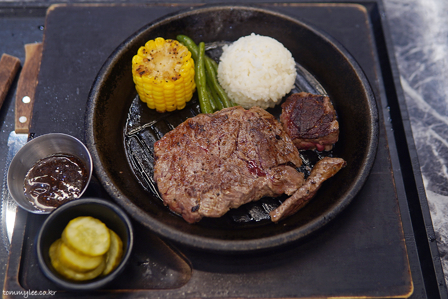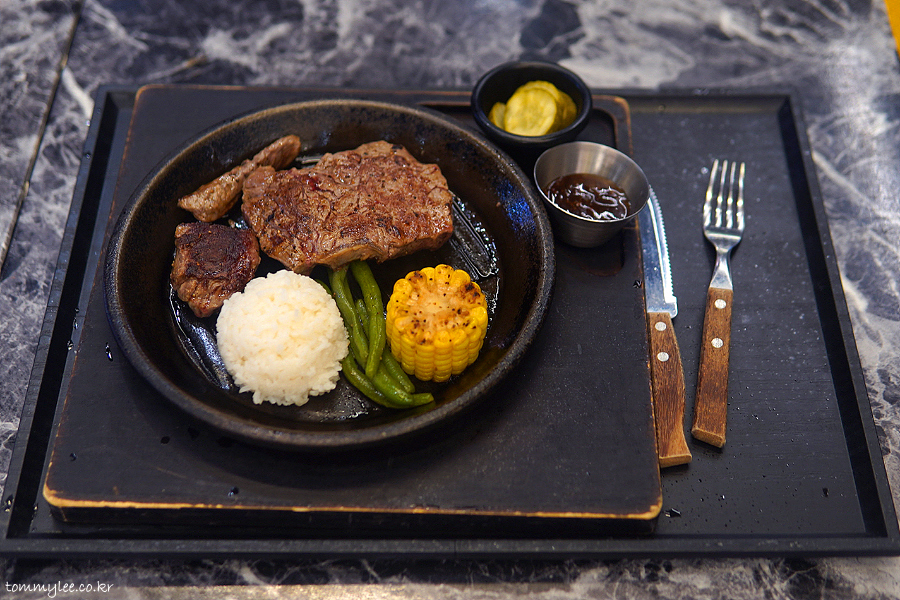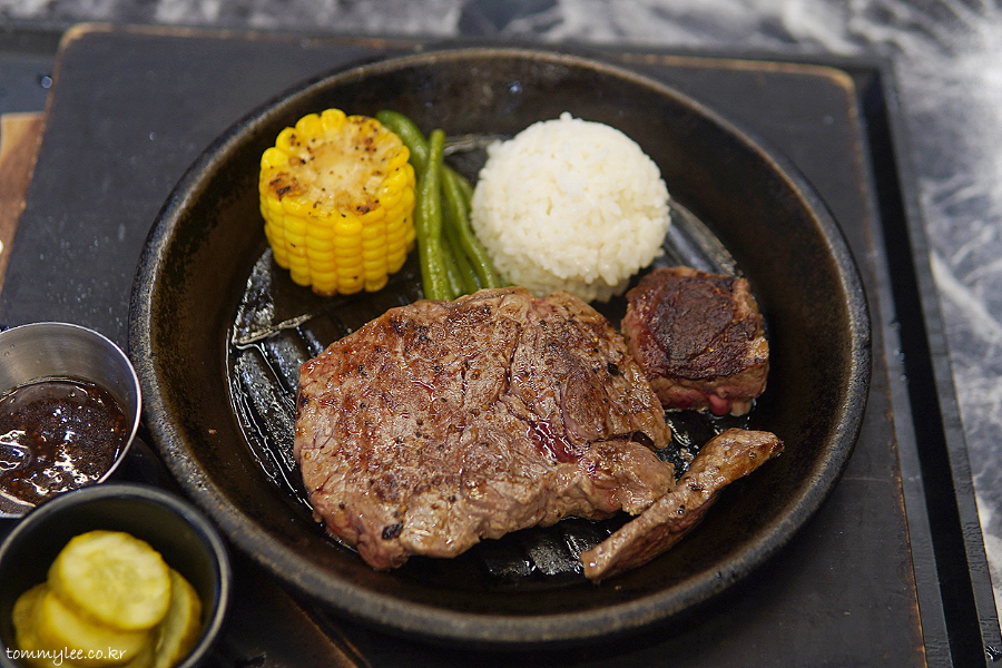 저의 경우 배 별로 안 고프거나 먹고 카페를 또 가야 하면 소 프라임 스테이크, 배가 많이 고플 땐 대 채끝살 스테이크로 가게 되는 듯하고요..