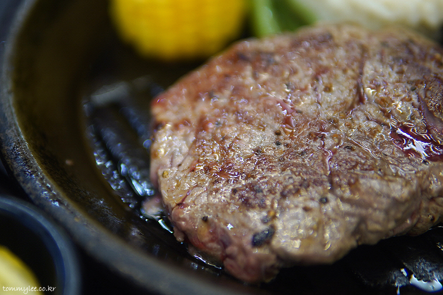 오늘도 지글지글 요란한 소리를 내는 스테이크를 받아왔습니다.. 스테이크 철판에 제공되는데.. 보기보다 훨씬 뜨거우니 주의를..