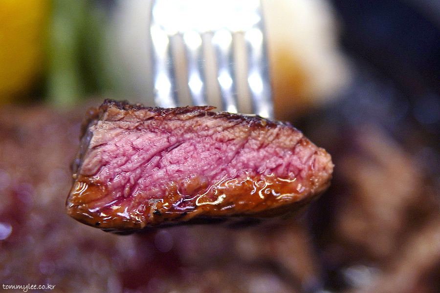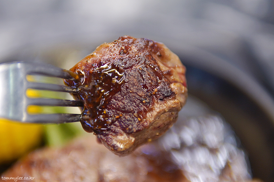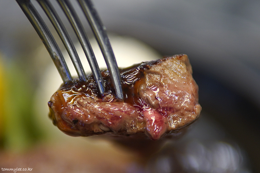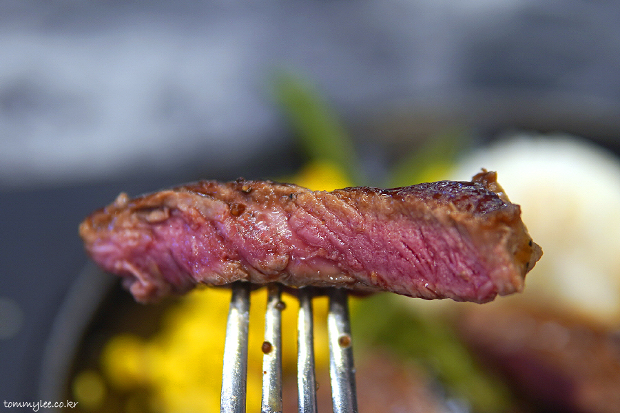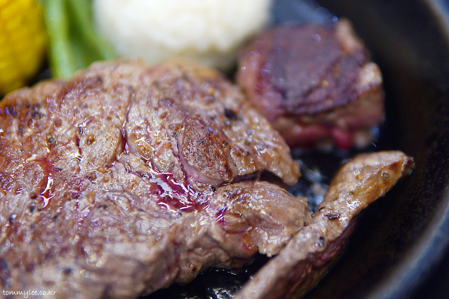 특제 소스와 함께 냠냐므.. 오랜만에 먹으니 쥬시하니 맛남.. 최근엔 스테이크어스 오면 거의 9,900원 프라임 스테이크였어서.. 걔는 싼마이인만큼 좀 질기거든요.. ㅋㅋㅋ..
