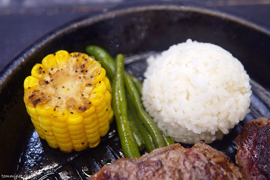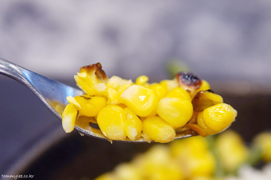 구운 옥수수와 그린빈, 흰쌀밥이 함께 제공된답니다.. 사이드 양이 많지는 않아서 부담없어요..