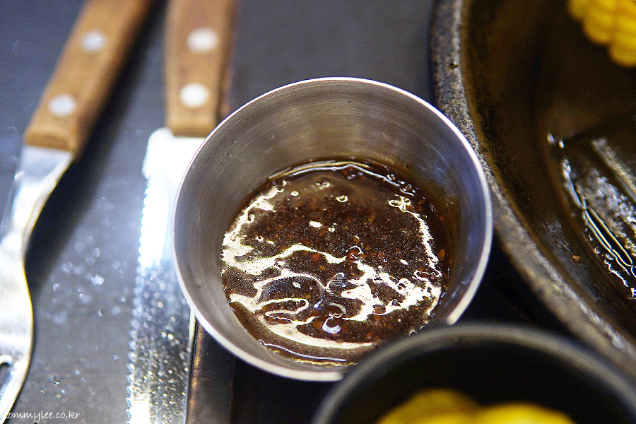 특제 스테이크 소스.. 원래 스테이크에 특제소스, 허브솔트, 와사비, 갈릭오일트러플 이렇게 4가지가 나와서 다양한 맛을 즐길 수 있었는데.. 지금은 특제 소스 한 가지만 줍니다..