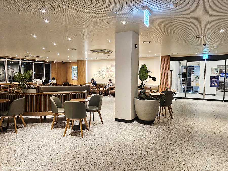 스타벅스 매장은 2층에 있답니다.. CU 옆 출입구를 통과해 쭉쭉 들어오다가 마지막에 있는 계단 또는 엘리베이터를 이용해서 2층으로 올라가심 OK..