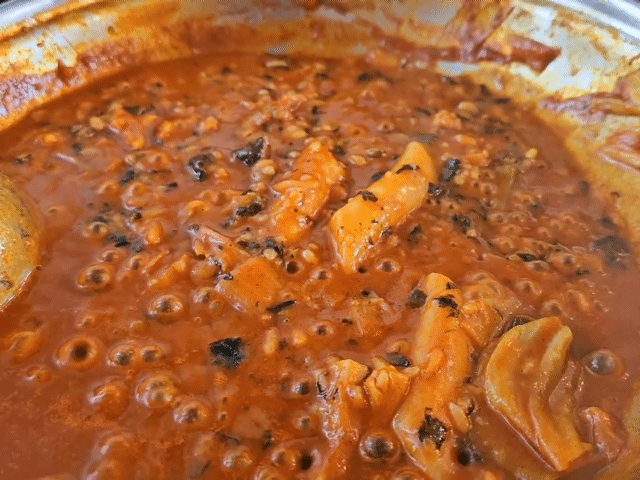 본격적으로 끓기 시작한 우삼겹 떡볶이.. 보글보글 하는 모습을 움짤로 담아봤습니다..