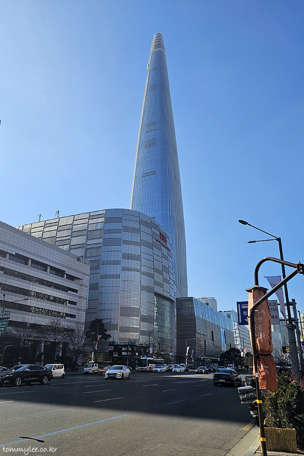 지하철 9호선 송파나루역 1번 출구에서 1.5분 거리로 가깝다고 하는데.. 9호선으로 환승이 많이 애매해서 전 잠실역에서 내려서 그냥 갔네요.. 송파의 상징 롯데월드타워의 위용..