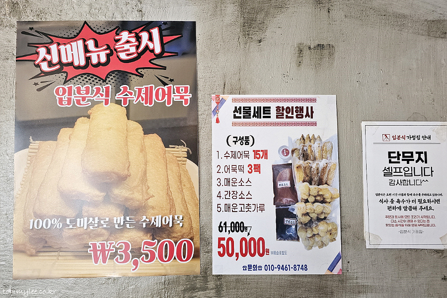 100% 도미살로 만든 수제어묵~ 입분식 수제어묵.. 입분식 선물세트 할인행사 중.. 단무지는 셀프라고 합니다..
