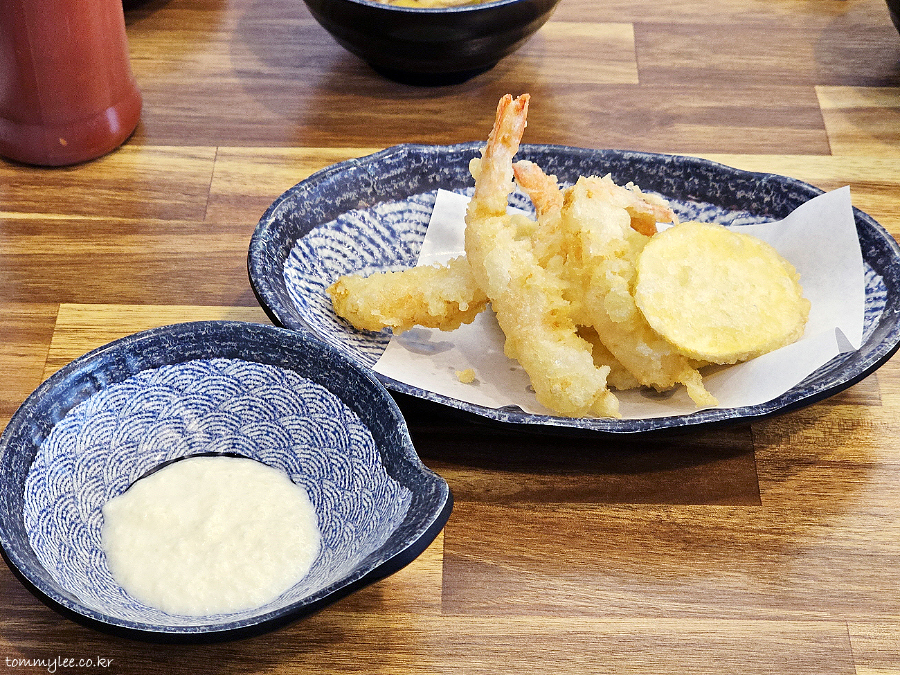 근데 먹어야 할 메뉴가 한 가지 더 있었답니다.. 바로 서비스로 제공되는 텐푸라 2종..