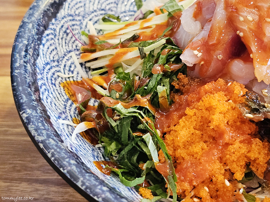 회덮밥이란 메뉴는 일본식 회덮밥인 카이센동과는 아무런 상관도 없는 순 한식 메뉴이고요.. 실질적으로 덮밥이 아닌 비빔밥입니다.. 함께 제공되는 이 초고추장 소스에 비벼서 먹어야 하니까 비빔밥..
