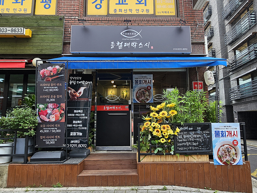 JONGCHEOL DAEBAK SUSHI.. 종철 대박 스시.. 영업시간 : 11:30~22:30, 일 16:00~22:00.. 주소 : 서울 은평구 응암로21길 5-1.. 예약문의 : 010-9391-8092..