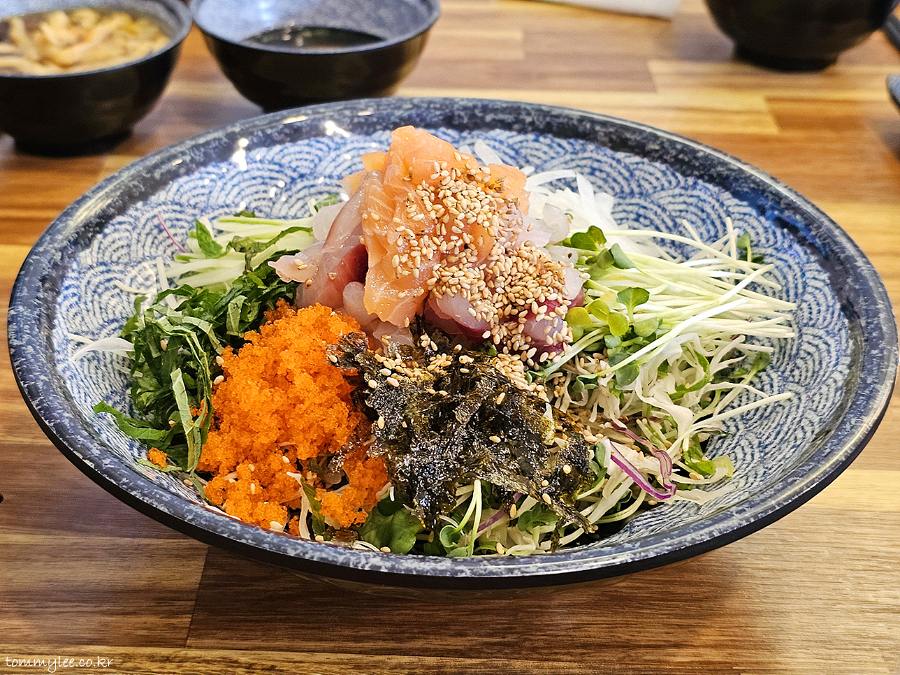 여름 특선 메뉴로 물회가 새로 나왔다고 해서 주문할까 했는데.. 회덮밥이랑 크게 다르지 않다는 지인분의 말씀.. 어차피 그게 그거고 소면보단 밥 먹는 게 더 이득이라나 뭐라나..
