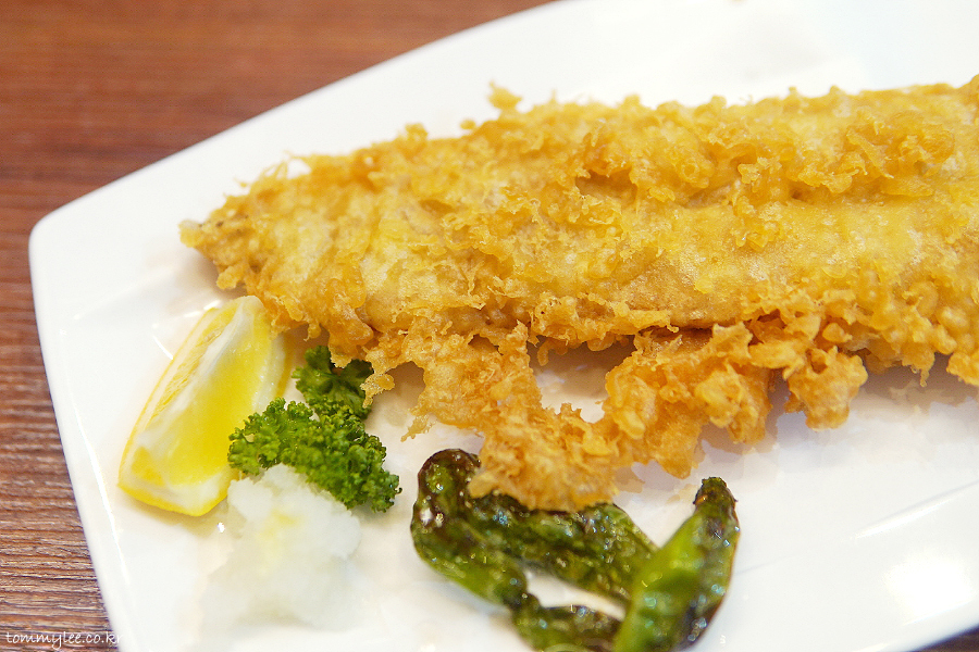 아나고 한 마리를 통째로 튀겨낸 바다장어 한마리 튀김입니다.. 초밥 메뉴 중에 바다장어 한마리승부가 있는데 친구 메뉴에요.. 승부는 밥이 밑에 깔려 있는데 튀김은 밥없음.. ㅋㅋㅋ..