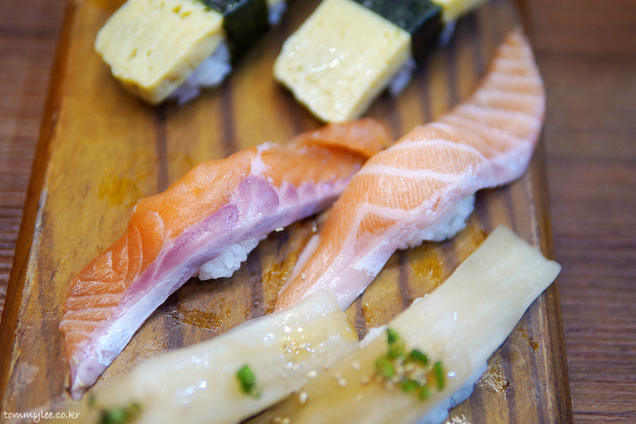 연어 초밥은 거의 무조건 주문하는 편.. 참치는 사시미로 먹고 연어는 초밥으로 드시는 걸 추천.. 연어 네타도 엄청 길쭉합니다.. 먹는 보람이 있음..
