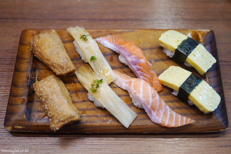 연어초밥과 묵은지참기름초밥은 추천입니다.. 계란이랑 유부는 쏘쏘..