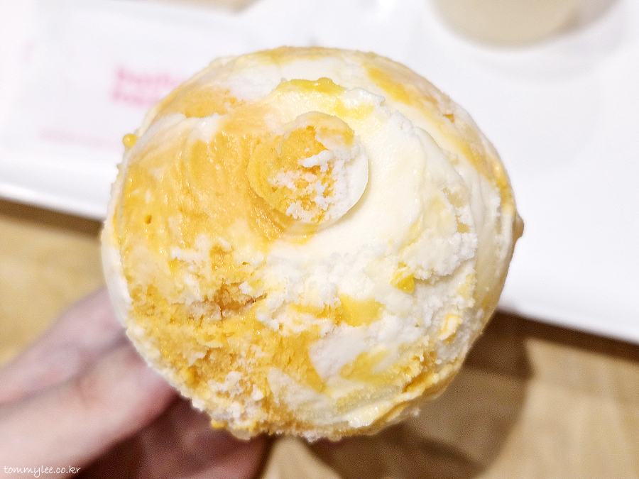 애망빙이 애플망고빙수 같은 느낌은 아니에요.. 망고빙수에 코코넛을 넣는 곳은 올해 먹은 망고빙수 중엔 없었어서.. ㅡㅡ;;.. 암튼 애플망고 샤베트는 예상대로의 맛인데 코코넛 연유 아이스크림은 생각보다 더 괜찮은 느낌..
