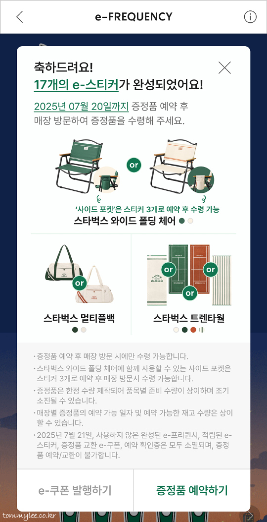 2025 스타벅스 E프리퀀시 이벤트는 라코스테와의 콜라보.. 스타벅스 X 라코스테 멀티플백을 받기 위해 나름 힘썼던 6월이었는데요.. 프리퀀시 스티커 17장 모으는 건 생각보다 힘들지 않았는데.. 한정수량이라서 매일 아침 예약에 도전하는 게 너무 힘들었네요..