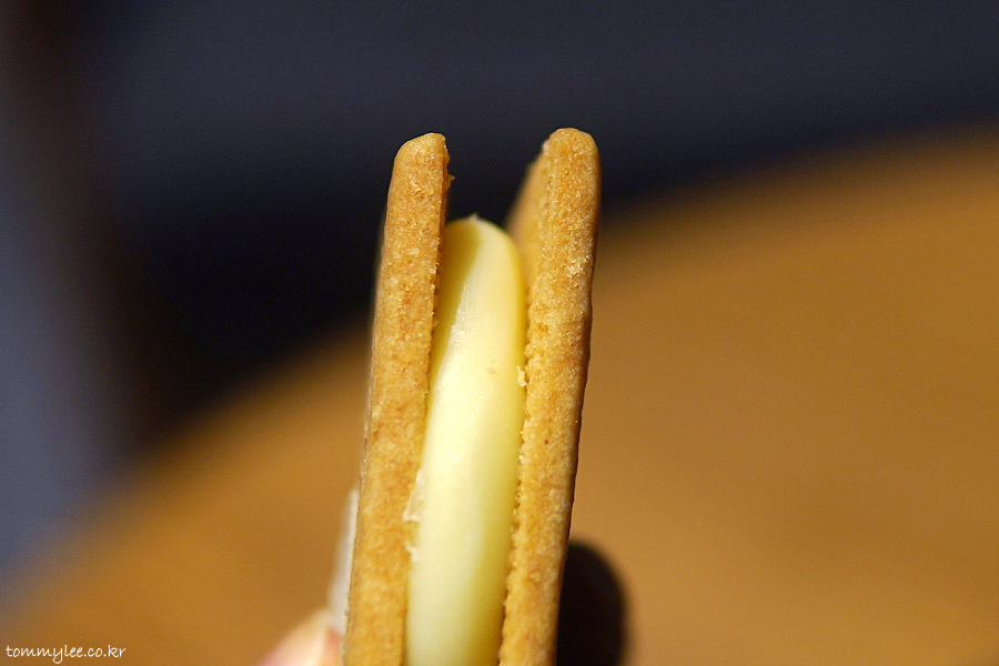 기대와는 달리 쿠키 자체가 크지 않은데다 가나슈 필링 또한 충분하진 않은 느낌입니다.. 중간에 1/3 이상은 비어 있는 공간이라 많이 아쉬워요..