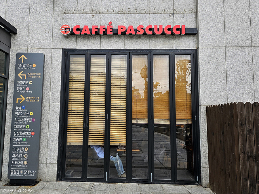 CAFFE PASCUCCI.. YONSEI SEVERANCE 1ST.. 카페 파스쿠찌 연세세브란스1호점.. 영업시간 : 06:30~21:00, 토 07:00~20:00, 일 08:00~18:00..