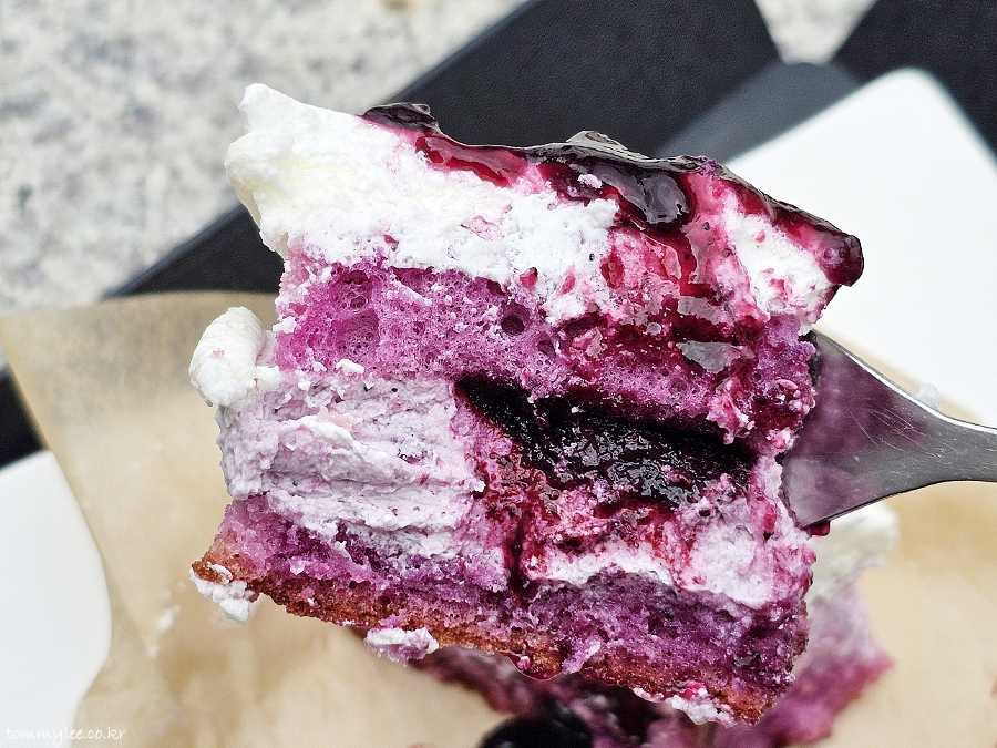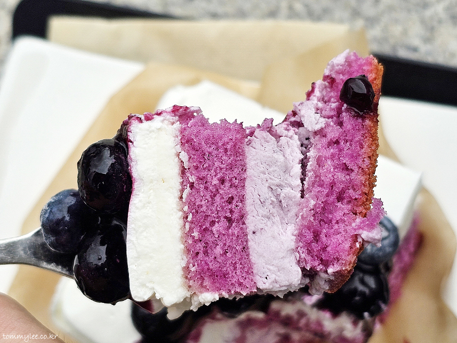 요거트 생크림이랑 블루베리 생크림 2가지에 케이크 시트도 블루베리.. 거기에 통통한 리얼 블루베리 토핑까지..