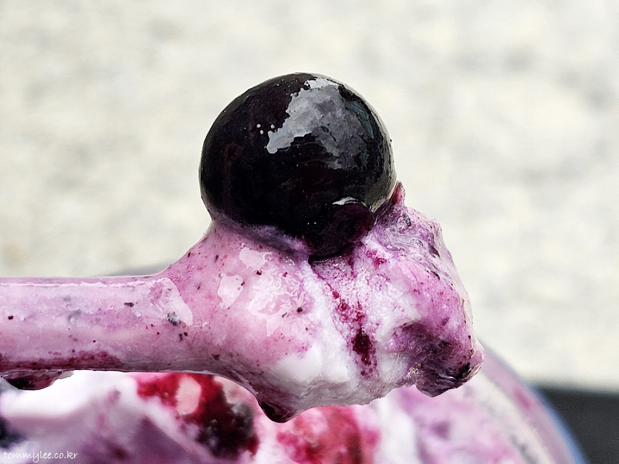 리얼 블루베리 그라니따에 라즈베리 요거트를 레이어드하고 블루베리 치즈 젤라또와 블루베리 소스, 리얼 블루베리를 토핑 한 기분이라고 보시면 될 것 같아요.. 제품 이미지컷보다 실제 제공되는 블루베리가 사이즈가 훨씬 커서 놀람.. 포도알인 줄.. ㅋㅋㅋ..