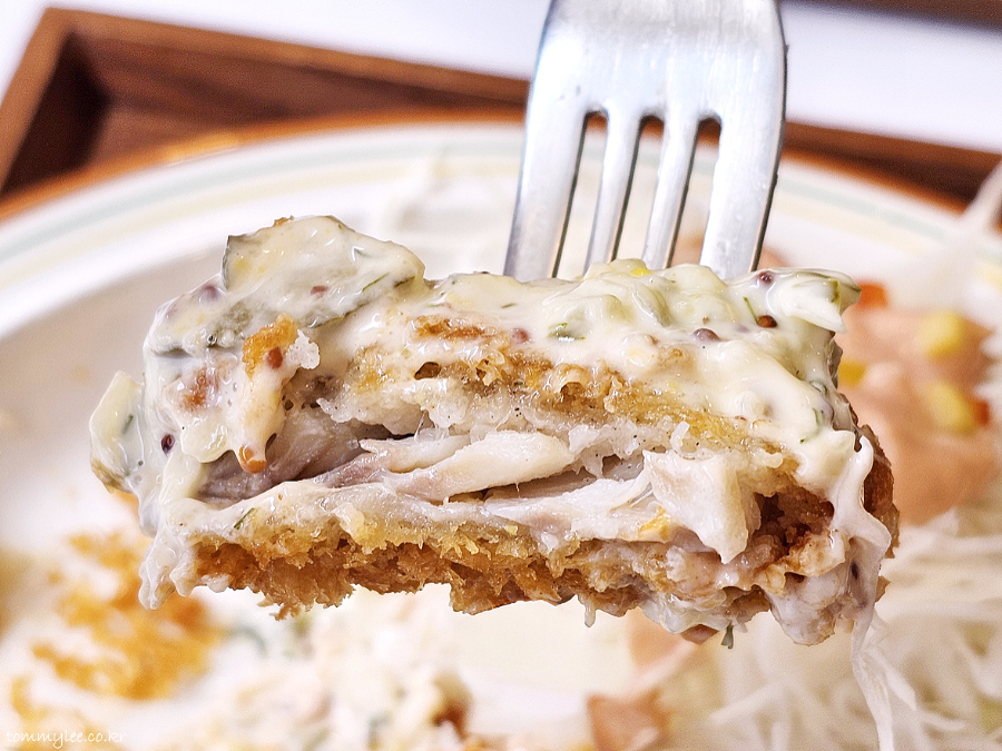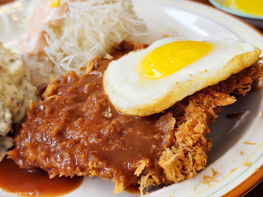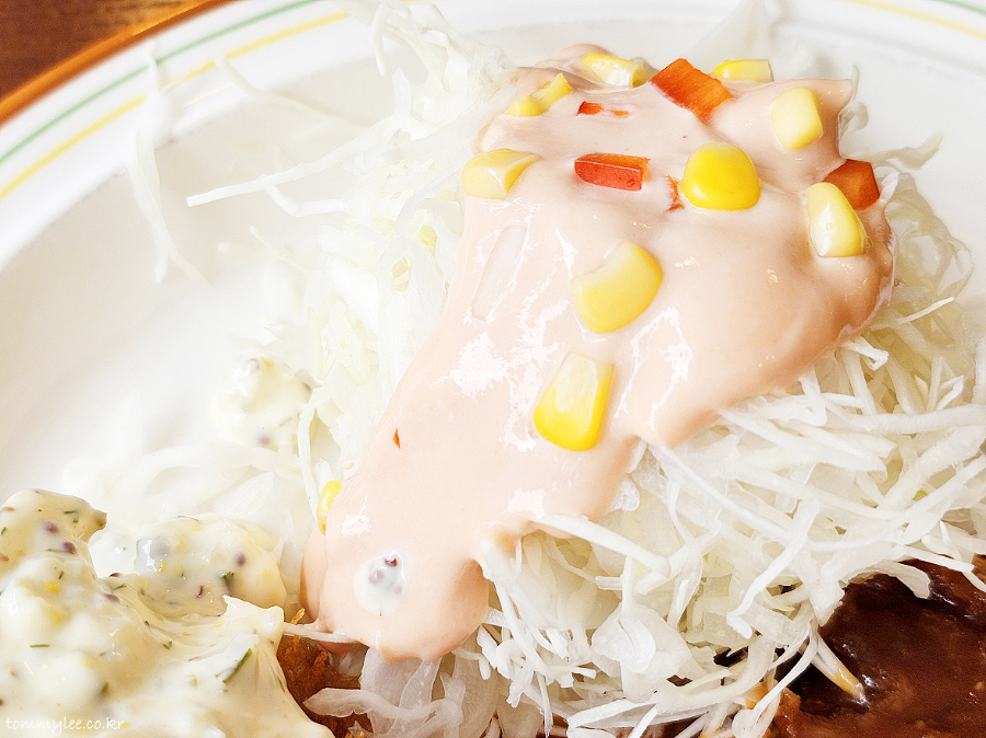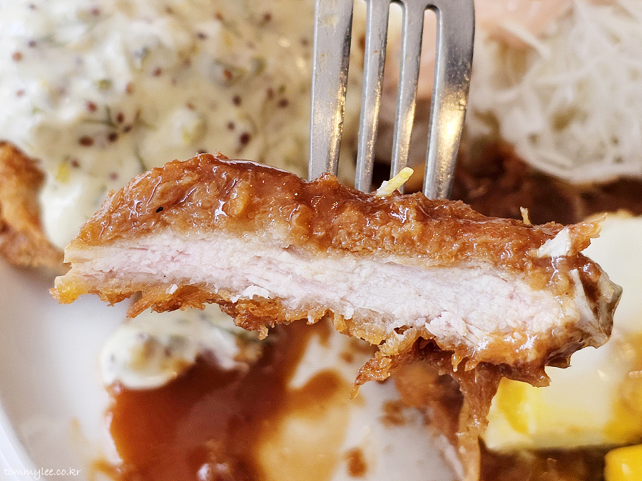 한국식 왕돈까스는 아니었고.. 고기 두께가 꽤 두껍고 튀김옷 역시 굵은 빵가루를 이용하고 있어서.. 한국식과 일본식을 적당히 절충한 형태로 보입니다..