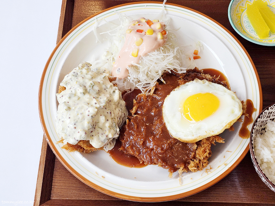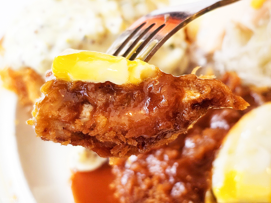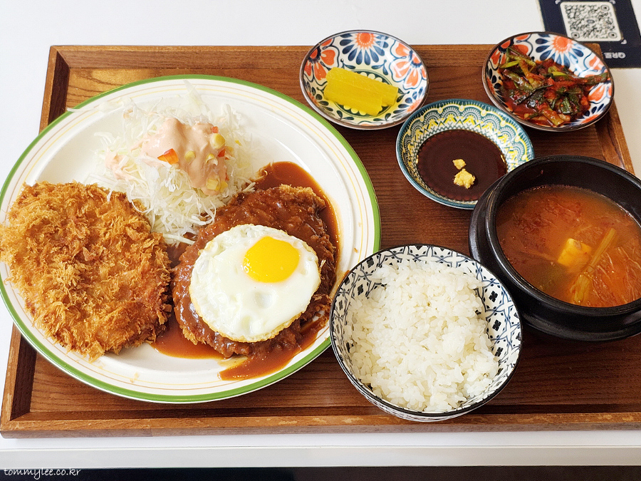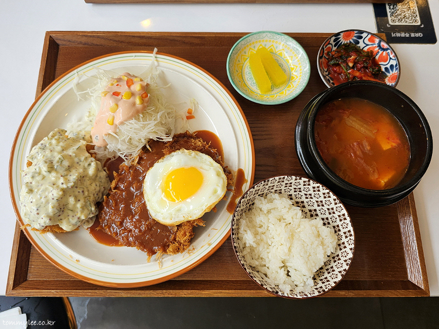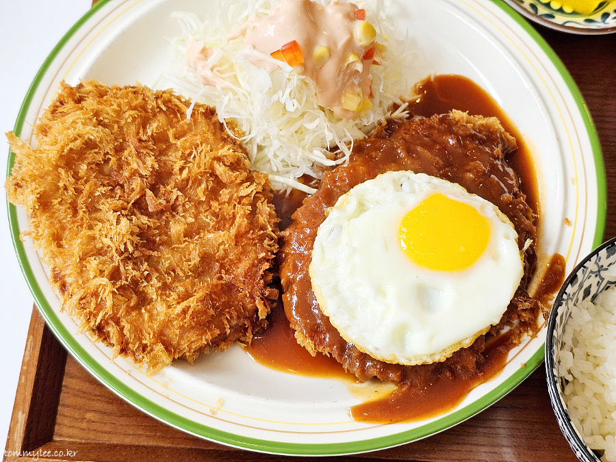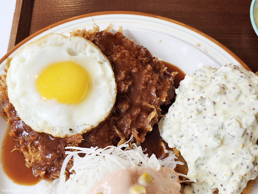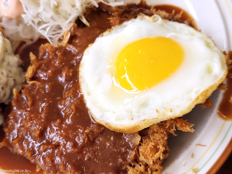 반숙 계란후라이를 돈까스에 올려 냠냐므.. 로스까스답게 씹는 맛도 있고 퀄리티 나쁘지 않네요..