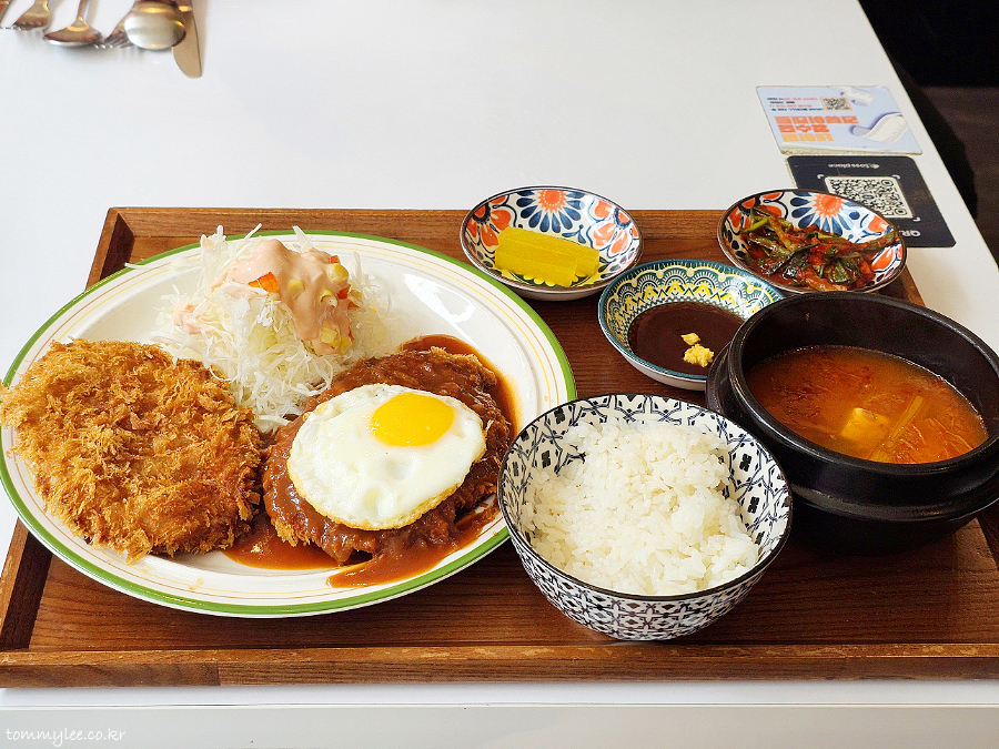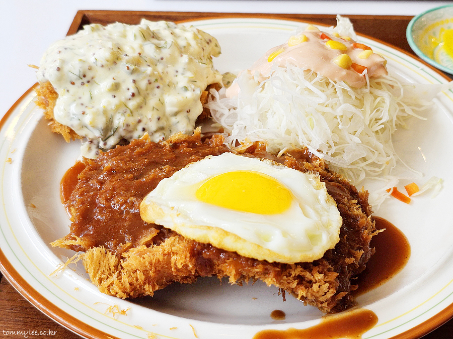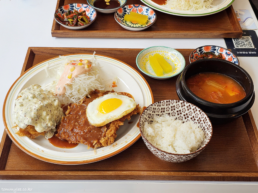 함박도 아닌 돈까스에 계란후라이를 올려 주는 훈훈한 인심.. 계란후라이 같이 주는 돈까스집은 흔치 않죠..