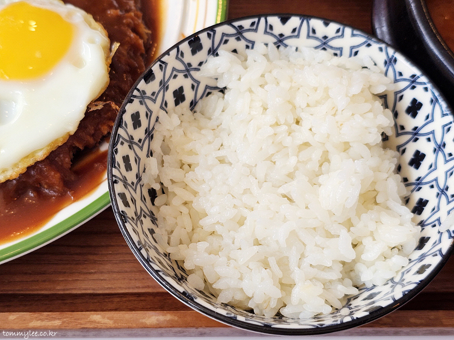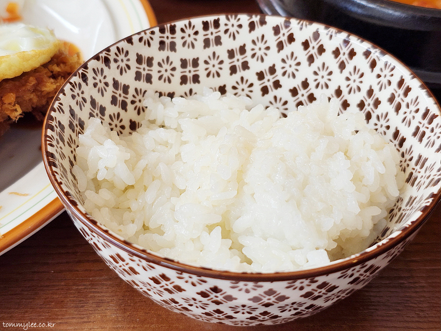 불광천왕돈까스에서 가장 맘에 안 들었던 건 이 라이스.. 밥이 고슬고슬해야 하는데 여긴 물이 많은 떡밥 스타일.. 돈까스집은 밥이 맛있어야 하는데 안타깝네요..
