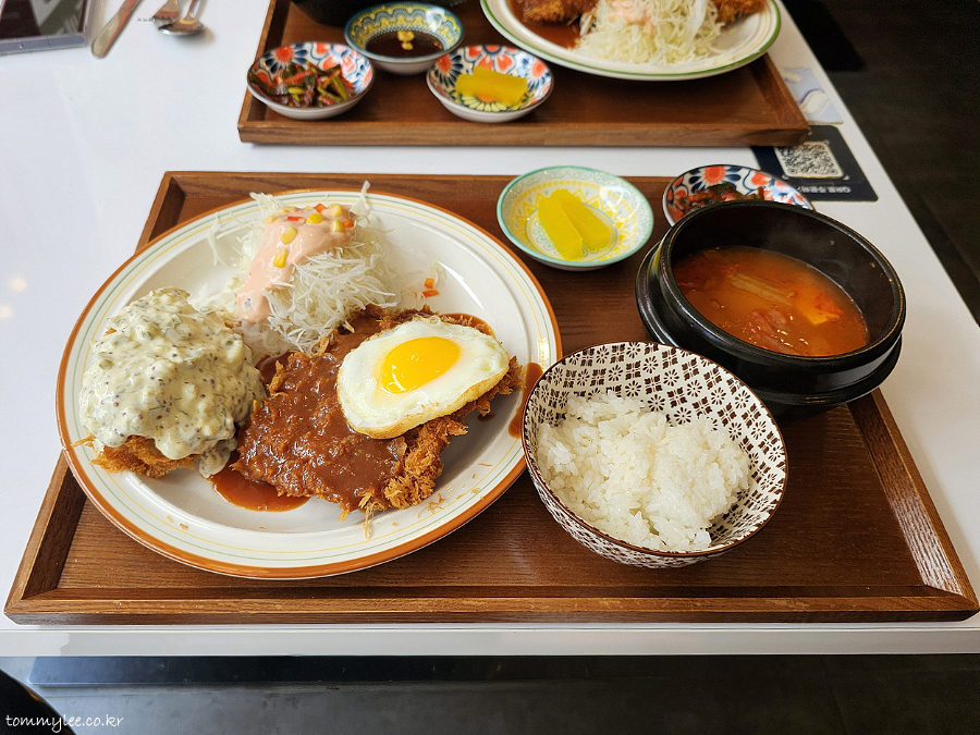 저는 돈까스도 먹고 싶고 생선까스도 맛보고 싶다는 욕심에 콤보까스 주문.. 콤보까스도 계란후라이 올려 주고 좋네요.. 이러면 콤보가 다른 메뉴보다 더 이득 아닌가 싶기도 함..
