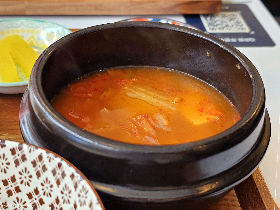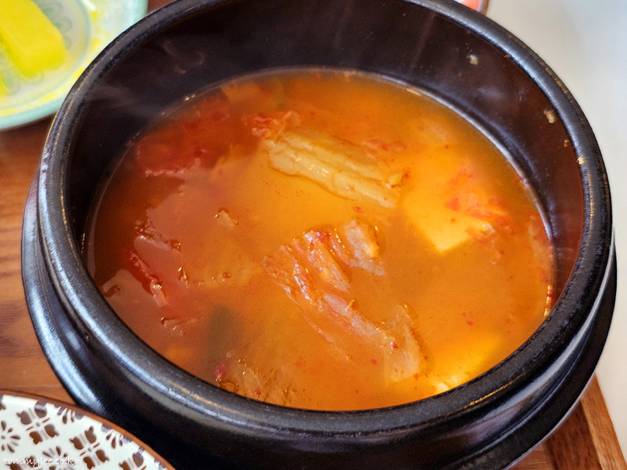뜨끈하게 제공된 뚝배기 김치찌개..