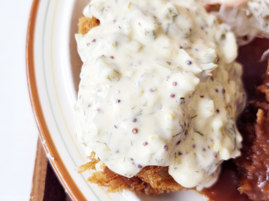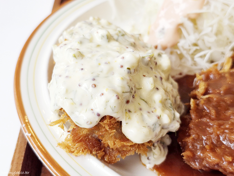 타르타르 소스가 잔뜩 올라간 생선까스.. 생선까스는 평소에 잘 먹을 일이 없는데 오랜만이네요..