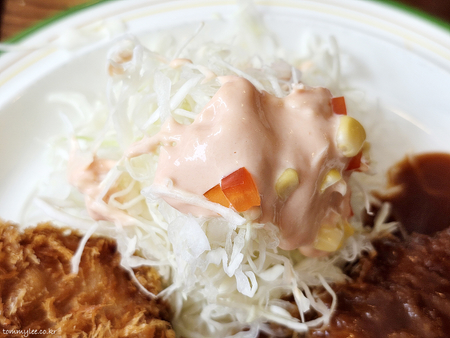 소스 돈까스에는 소문대로(?) 계란후라이가 올려져 나왔답니다.. 양배추 샐러드도 양이 엄청 많고 좋네요..