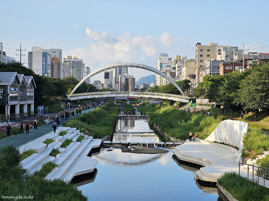 불광천왕돈까스는 은평구 레인보우교로 불렸던 불광천 두빛나래교 인근에 자리하고 있습니다.. 불광천에는 무지개형 아치교가 3곳이 있는데.. 월드컵경기장 인근의 성미교가 가장 먼저 생겼고.. 서대문구의 해담는다리가 기존 낡은 교량을 교체하며 2005년 그랜드 오픈.. 마포구와 서대문구에 질 수 없다며 은평구에서 질투심에 불타 30억이 넘는 대규모 예산을 투입해 만든 다리가 바로 저 두빛나래교.. 차가 다닐 수 없는 도보육교 형식의 아치교.. 서대문구보다 크고 예쁘게 만들라는 지시를 받았던지.. 다리 곡률이 쓸데없이 높아, 오르락내리락해야 하고 계단까지 있는 황당한 다리가 탄생.. 보기에만 좋을 뿐 건너기엔 불편한 덕분에 이용하는 사람은 별로 없음.. 애초에 바로 옆에 신흥상가교가 멀쩡히 있어서 도보전용이면 굳이 만들 필요조차 없었죠.. 치적 쌓기용으로 만든 쓰레기 다리라는 불편한 진실..