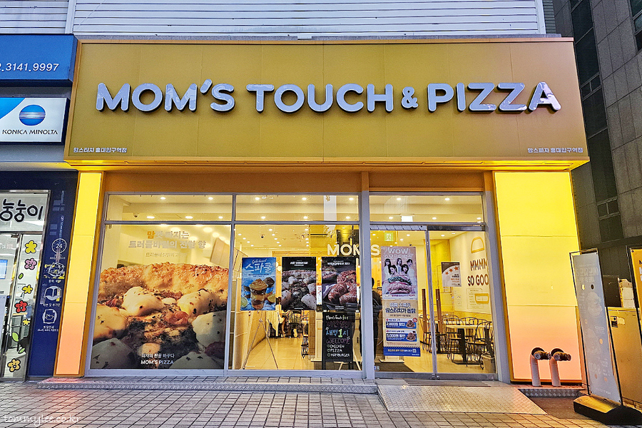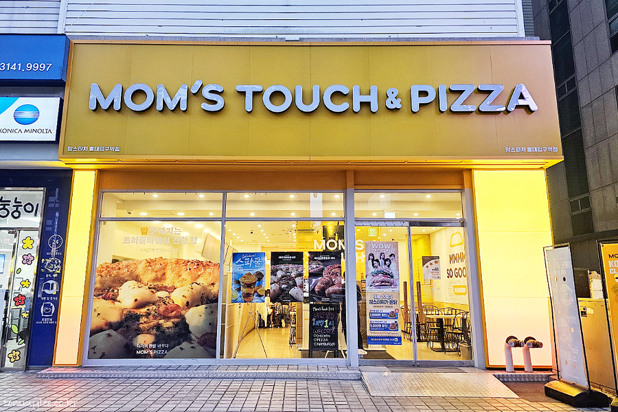 MOMS TOUCH & PIZZA.. HONGIK UNIV. STATION.. 맘스터치 앤 피자 홍대입구역점.. 영업시간 : 10:30~01:00..