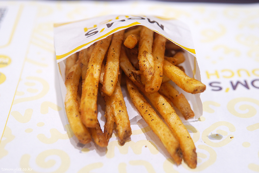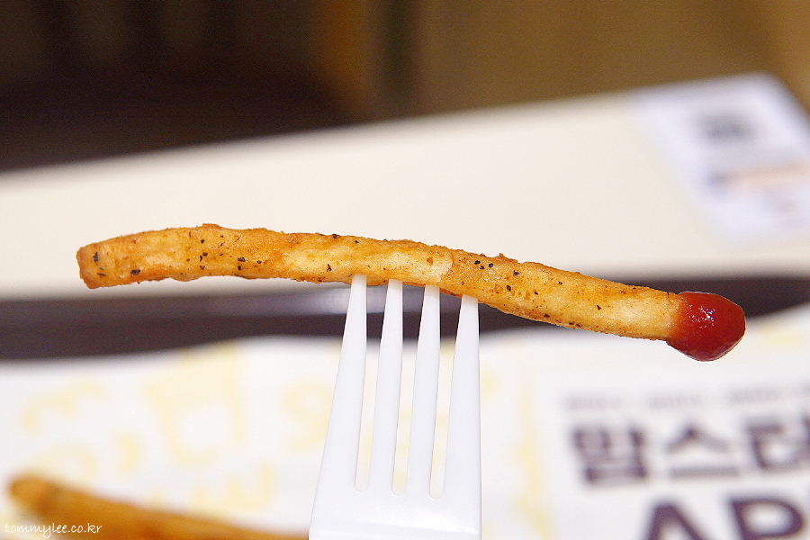 KFC는 케이준 스타일을 버리고 일반 프렌치프라이로 회귀했지만.. 맘스터치는 여전히 케이준 양념 감자..