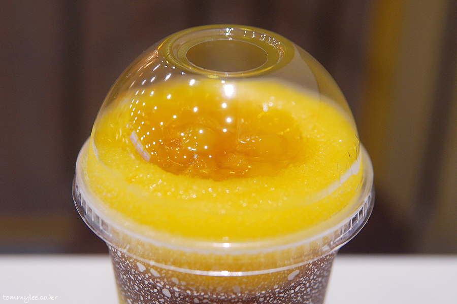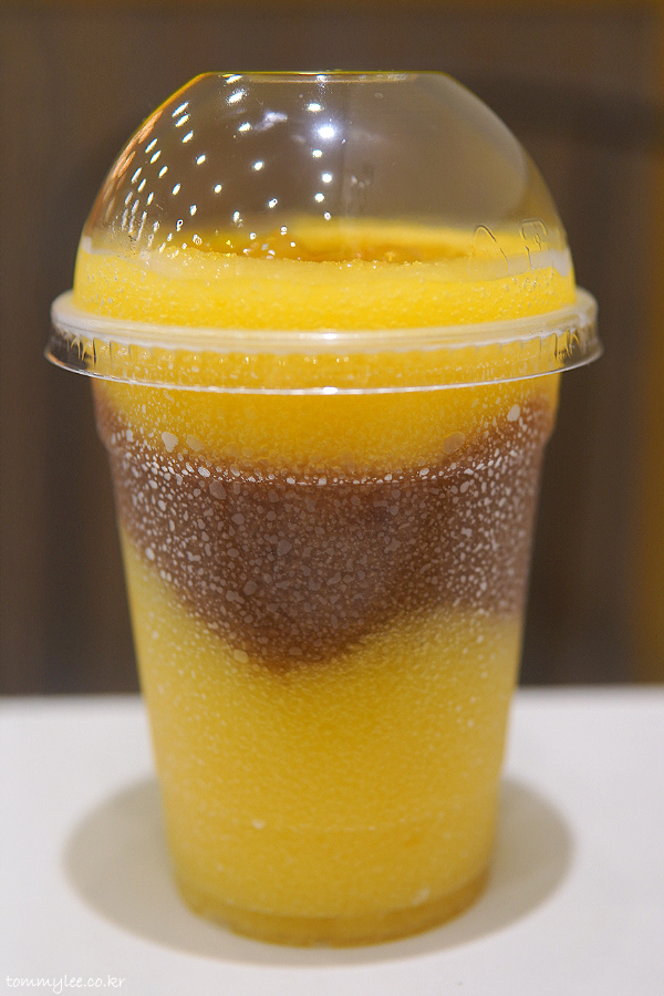 제주 한라봉과 망고의 콤비형 슬러시라고 보시면 되고요.. 중간에 콜라 슬러시를 둘러 예쁜 레이어까지 준 훈훈한 한라망고 스파쿨..