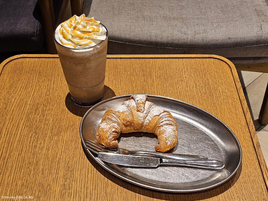 큼직한 크루아상에 달달이 프라푸치노 다 흡입하니 너무 배부르네요.. 운이 좋아서 먹게 되었던 부드러운 크림 크루아상.. 다음에는 갈릭 크루아상을 먹어 보고 싶다는 생각이 드네요..