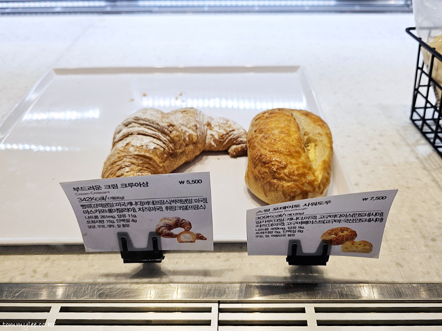 보통은 늦게 가면 아무것도 남아있는 빵이 없지만.. 오늘은 그래도 2개 소소하게 남아 있네요.. 기쁜 마음에 크림 크루아상 주문..