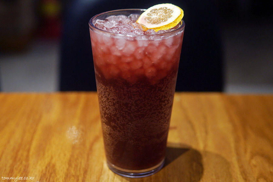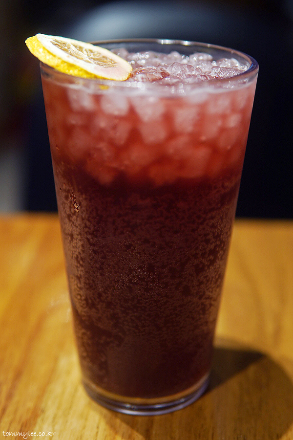 스웨디쉬 베리즈 티가 히비스커스 티 베이스에 베리믹스와 건포도가 들어가 있어서 새콤한 맛이라 여름에 아이스티로 아주 좋거든요.. 근데 여기 탄산까지 들어가니까 청량감이 정말 뿜뿜..
