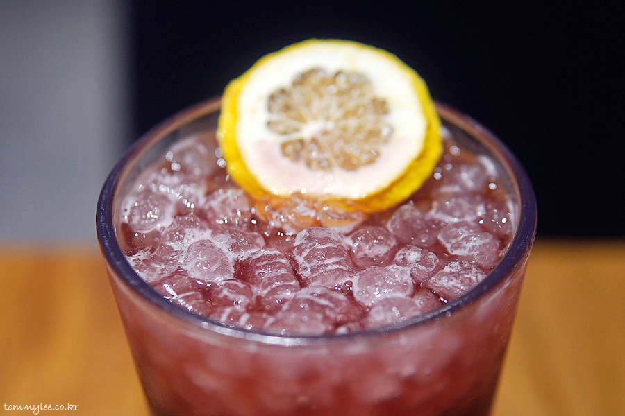 스웨디쉬 베리즈 티 베이스에 제주 레몬 과즙과 얼음, 스파클링워터를 블렌드했다고 보시면 되는 스파클링 제주 레몬 스웨디쉬 티입니다.. 토핑으로 올라가는 레몬 휠은 아쉽게도 건조 레몬..