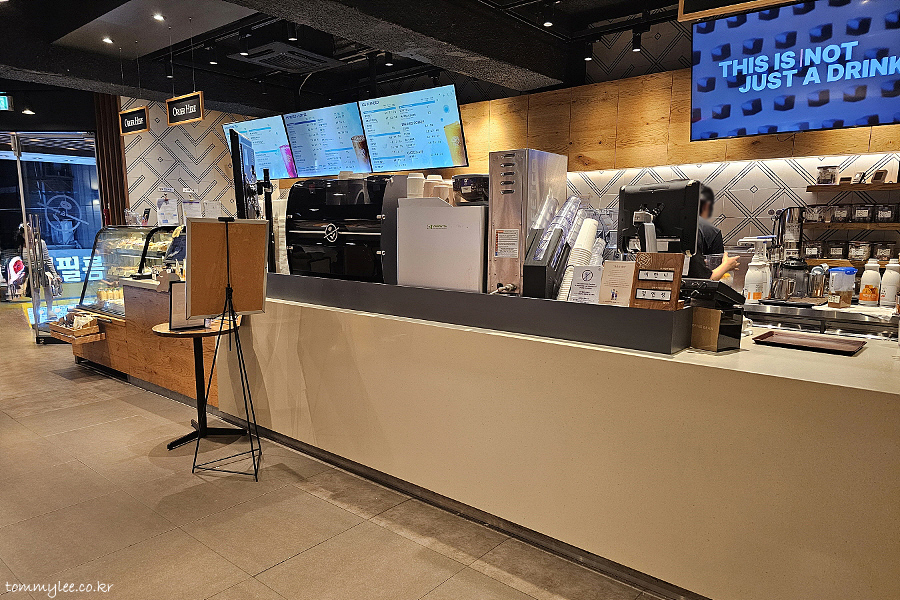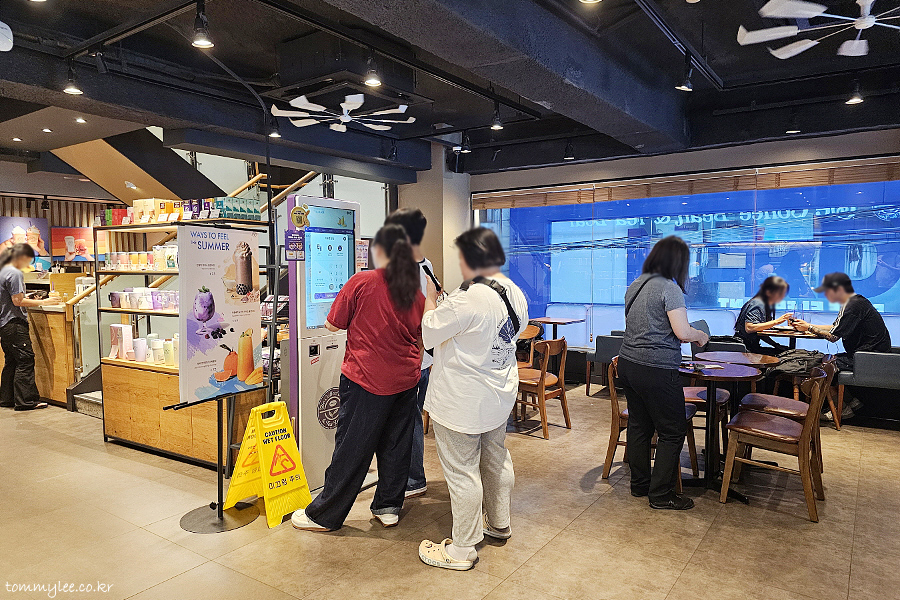 많은 손님들로 붐볐던 커피빈 홍대역점.. 오로라 썸머픽 음료는 퍼플오더 주문 시에만 할인이 가능해서 저는 키오스크가 아닌 앱으로 미리 주문 후 방문했답니다..