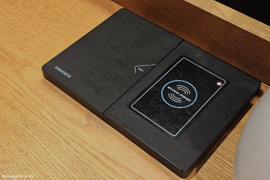 파스쿠찌 마포광흥창점의 자랑 무선충전패드.. 저속 충전이긴 하지만 안정적으로 충전 잘 됩니다.. 휴대폰 충전용으론 많이 부족하지만 블루투스 충전 잘했고요..