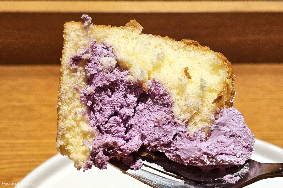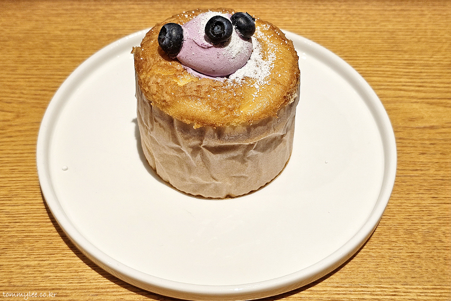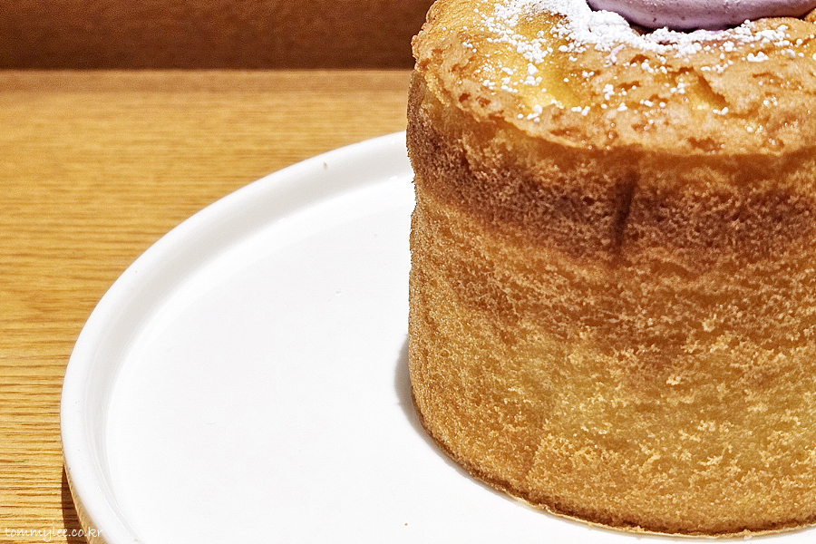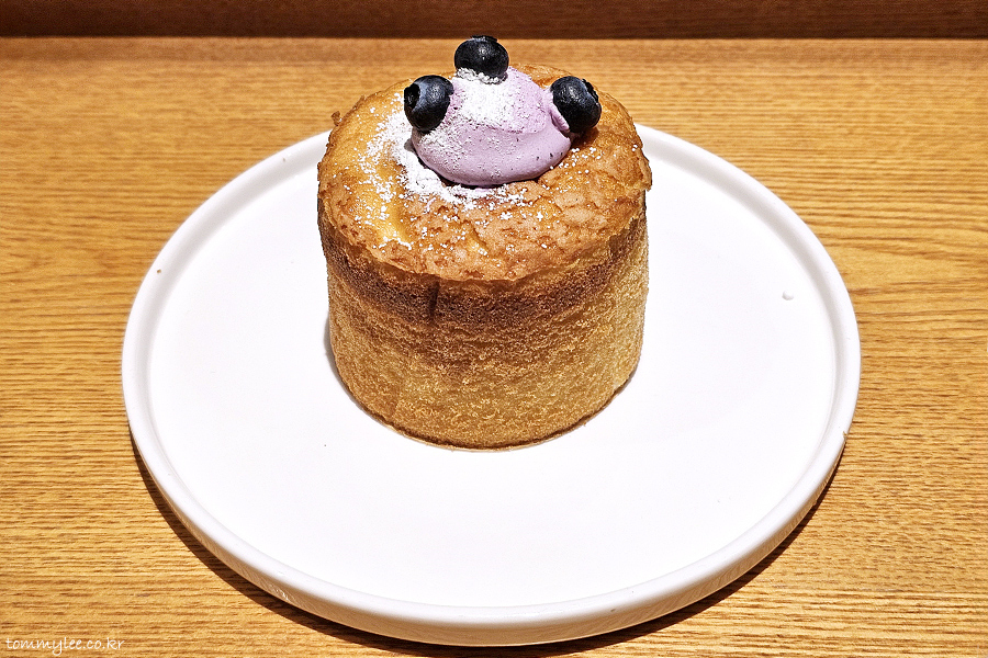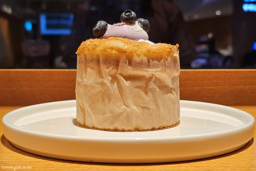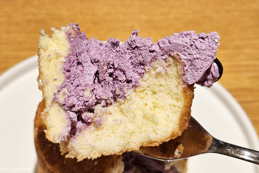 블루베리 페어링 시즌 메뉴로 나온 블루베리 생크림 카스텔라.. 기본 케이크 메뉴인 폭신한 생크림 카스텔라의 블루베리 버전으로 보시면 되겠단..