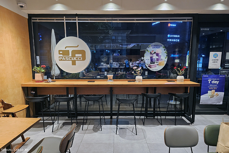 CAFFE PASCUCCI.. MAPO GWANGHEUNGCHANG.. 카페 파스쿠찌 마포광흥창점.. 영업시간 : 08:00~22:00..