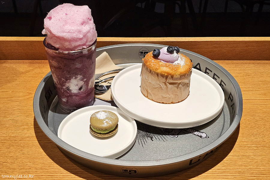 9시 넘어서 시간이 촉박했네요.. 키오스크로 호다닥 주문 완료.. 블루베리 페어링 메뉴랑 마카롱 주문..