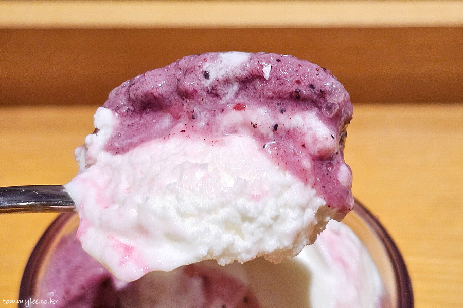 솜사탕 아래엔 요거트 젤라또와 블루베리 그라니따가 자리하고 있답니다.. 베리베리 요거트 그라니따에서 블루베리 토핑이 빠지고 솜사탕이 올라갔다고 보시면 되겠단..